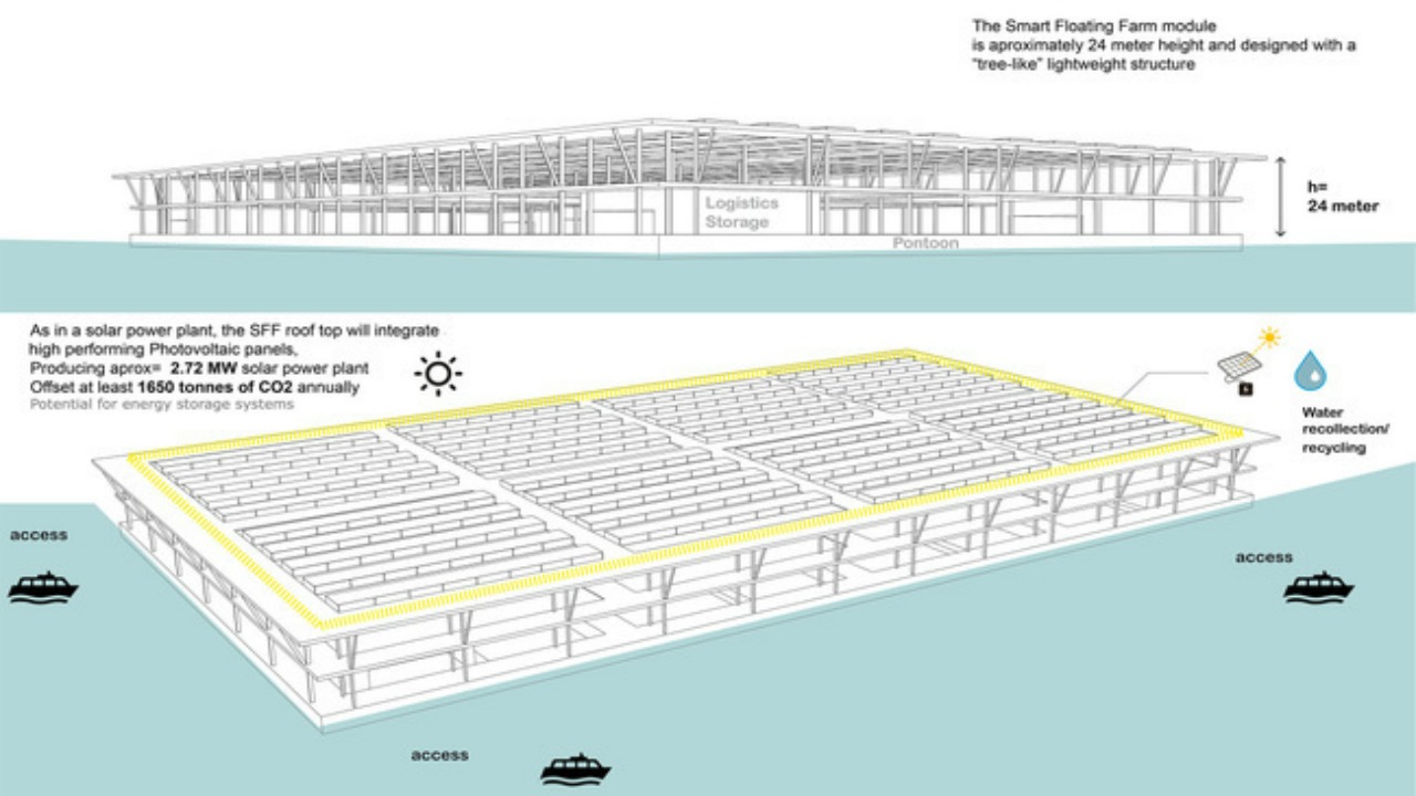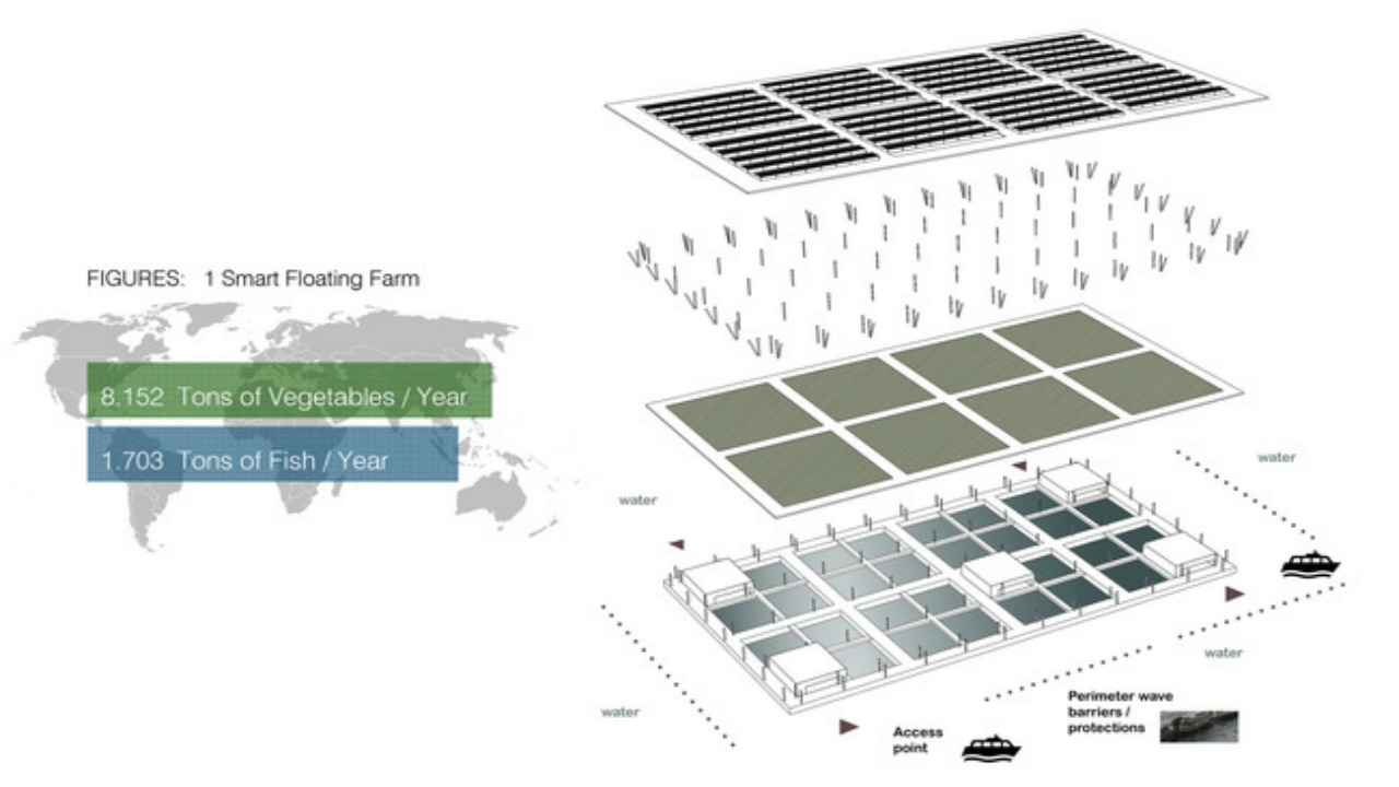 Yüzen çiftlikler kuraklığa, su baskınına zararlı böceklere dayanıklı olup ticari tarımın zararlı sonuçlarını elimine etmeyi amaçlıyor. Bu yeni sistem hayata geçtiği takdirde daha çok insanın karnı doyacak ve besin maddelerinin fiyatları gereksiz bir şekilde artış göstermeyecek.