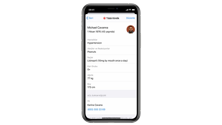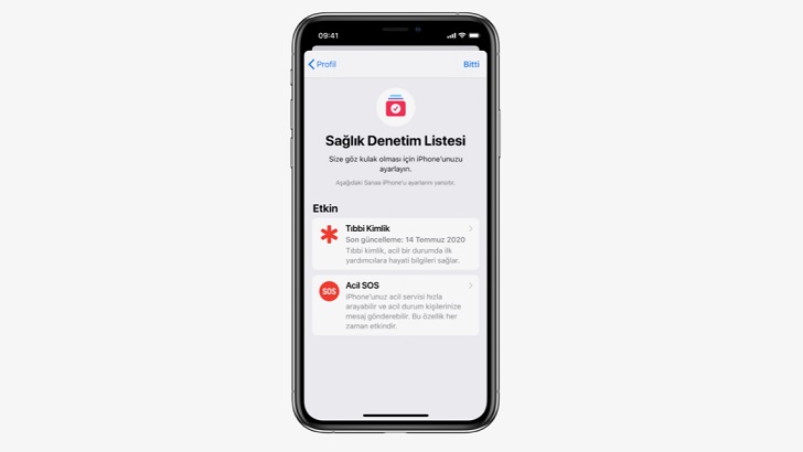 Sağlık Denetim Listesi menüsünden acil bir durumda ilk yardımcılara hayati bilgileri sağlayan Tıbbi Kimlik verilerinizi düzenleyebilir; Acil SOS menüsünden acil durum kişilerinizi düzenleyebilir ve hatta organ bağışçısı olmak için kaydolabilirsiniz.