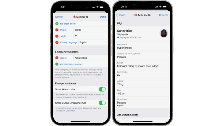 Sağlık uygulamasından kolayda Acil durum kişisi ekleyebilirsiniz.