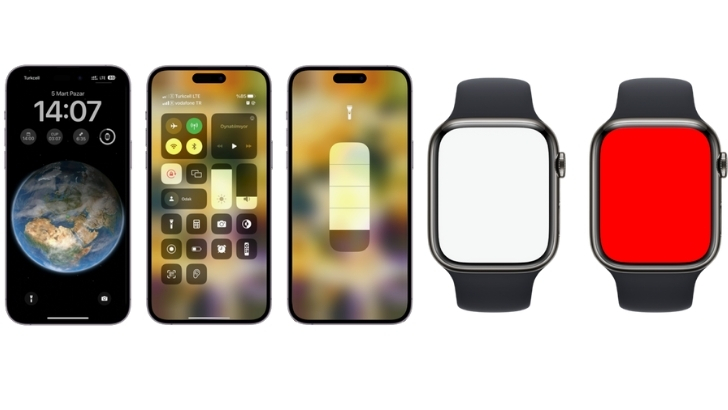 iPhone’unuzdaki LED flaş, bir el feneri görevi de görür, böylece 4 farklı ışık kademesinde iPhone’unuzu LED flaş olarak kullanabilirsiniz. El Feneri’ni Apple Watch Control Center’dan üç farklı modda açabilirsiniz: sabit beyaz ışık, yanıp sönen beyaz ışık veya sabit kırmızı ışık.
