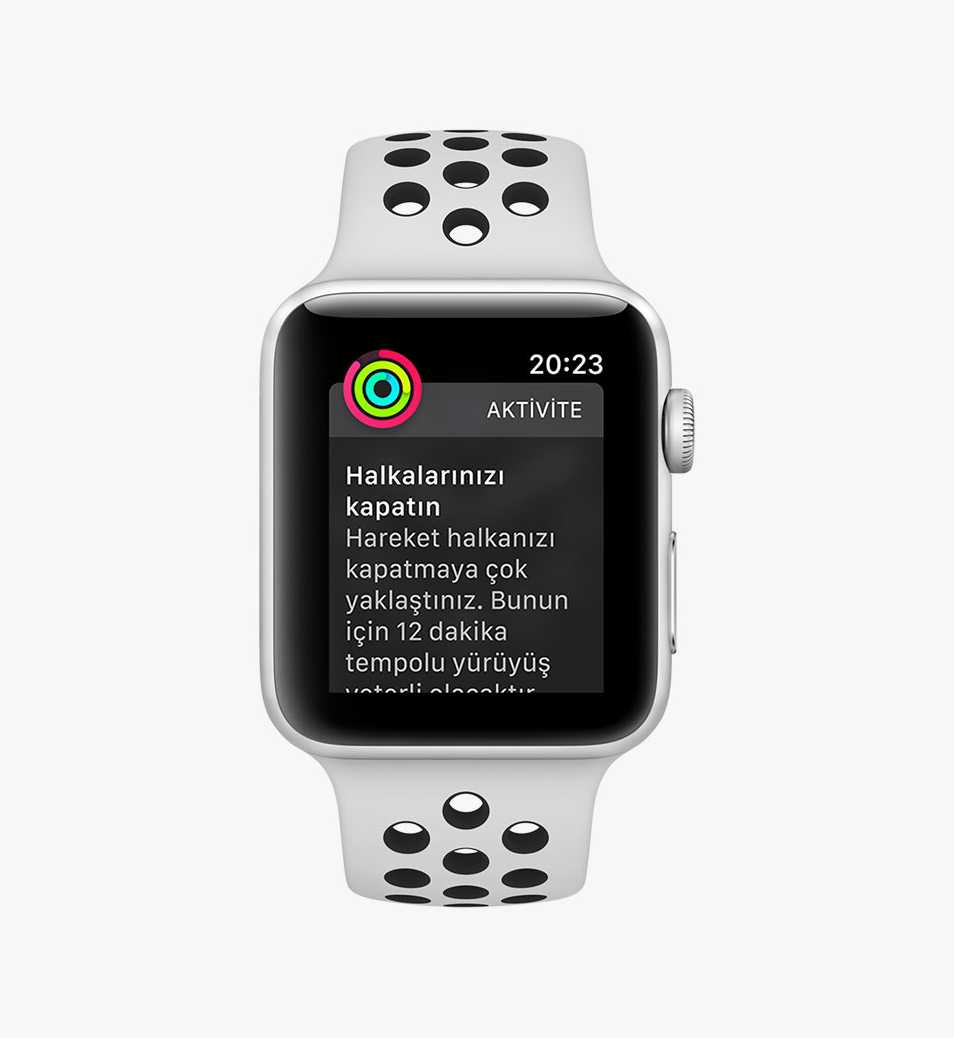 Apple Watch Series 3, ihtiyaç duyduğunuz motivasyonu sağlamak için size kişisel antrenörlük de yapıyor. Sabahları gelişiminizle ilgili kişisel güncellemeler, akşamları ise halkaları kapatmanız için öneriler sunuyor. Ayrıca, aktivite ve antrenman geçmişinizi baz alarak size her ay yeni bir hedef öneriyor. Apple Watch’unuzu maratonu tamamlamak için de bir motivasyon kaynağı olarak kullanabilirsiniz.