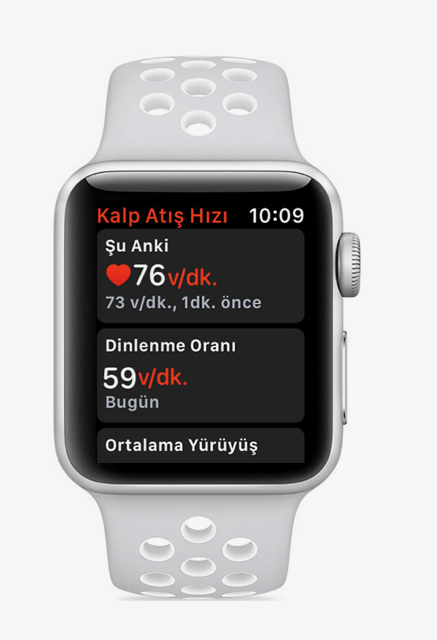 Koşarken kondisyonumuzu belirleyen önemli ölçümlerden biri ise kalp atış hızımız. Kalp Atış Hızı uygulamasını kullanarak kalp atış hızınızı istediğiniz zaman kontrol edebilirsiniz. Uygulamayı açın ve Apple Watch’un kalp atış hızınızı ölçmesini bekleyin. Ayrıca gün boyunca dinlenme, yürüme, nefes egzersizi, antrenman ve iyileşme sırasındaki kalp atış hızınızı da görüntüleyebilirsiniz. Antrenman uygulamasını kullandığınızda Apple Watch, kalp atış hızınızı antrenman sırasında sürekli ölçer; kalp atışınızın iyileşme hızını belirlemek için de antrenman bittikten sonraki 3 dakika boyunca ölçmeye devam eder. Ek olarak, Apple Watch, hareketsiz olduğunuzda gün boyunca, yürüdüğünüzde ise düzenli olarak kalp atış hızınızı ölçer.
