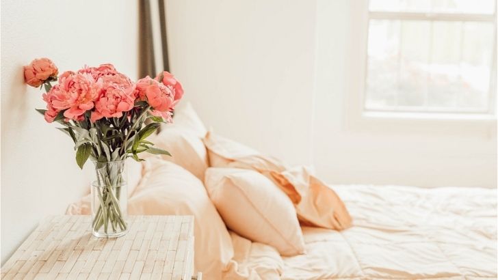 Evinizin tüm alanlarında olduğu gibi yatak odanızda da bitkilerin pozitif enerjisinden faydalanabilirsiniz. Eğer yatak odanız çok fazla güneş ışığı almıyorsa saksı bitkileri yerine vazonun içine taze çiçekler yerleştirebilirsiniz.