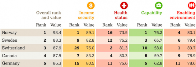 Japonya hariç, listenin ilk 10’unda yer alan ülkeler Batı Avrupa, Kuzey Amerika ve Avustralasya’da yer alıyor. İngiltere ise emekli insanların yaşam kalitesinin düşük olmasından ötürü 11inci sırada yer alıyor.