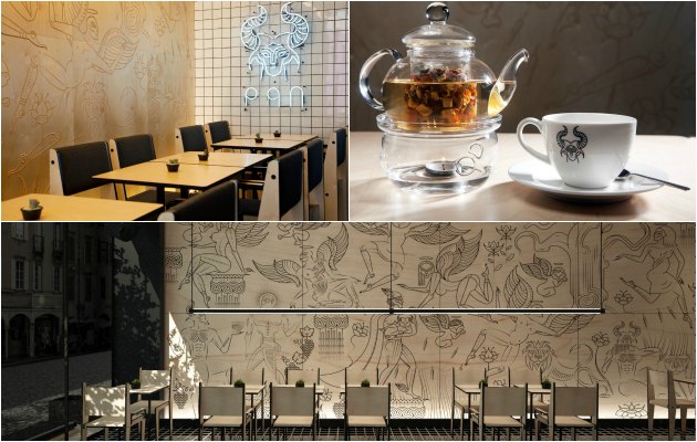 İlhamını mitolojiden alan bir mekan karşınızda. Antik resim sanatındaki figürlerin modernize edilmiş çizimlerine yer verilen Cafe Pan, ismini doğanın ve doğallığın sembolü olan Yunan mitolojisinin kahramanlarından Pan’dan alıyor. Dünya mutfağından farklı lezzetlerin bir araya getirildiği menüsü ise Türk damak tadına uygun olarak yorumlanmış. Sabah kahvaltısından akşam yemeğine haftanın yedi günü hizmet veriyor.