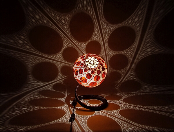 Polonyalı sanatçı Przemek Krawczynski tarafından tasarlanan bu eşsiz lambalar, hava karardığında tüm odayı desenleriyle dolduruyor. Okulunu ve işini bırakarak tüm tutkusunu bu tasarım harikası lambaları yapmaya yönlendiren sanatçı, lambalarını Senegal’den gelen su kabaklarıyla yapıyor.