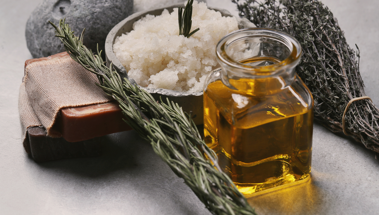 - 2- 3 damla taşıyıcı yağ ile 3- 5 damla kekik, lavanta, biberiye ve sedir ağacı yağlarını karıştırın. Bu yağların her biri, saç derisi sağlığı için faydalı özelliklere sahip.
