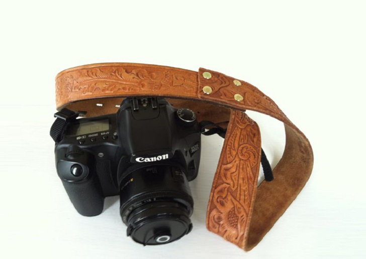 Kemerleri, omuz ölçünüzü aldıktan sonra kesin. Kestiğiniz kemerlerin sonuna deri zımbasıyla 4 adet delik açın. Perçinlerin iki deri parçasını birleştirmek için açtığınız deliklerin içine rahatça oturmasını istiyorsanız en uygun ebatlı zımbayı kullanmanızda fayda var. Eğer ilk kez deniyorsanız, kullanmadığınız ve kestiğiniz deri parçaları üzerinde birkaç deneme yapmanız iyi olabilir. Perçinleri deliklere yerleştirdikten sonra, sert bir yüzey üzerinde perçinleri çekiçleyerek iki parçayı sabitleyin. Ve vintage görünümlü kamera askınız hazır.