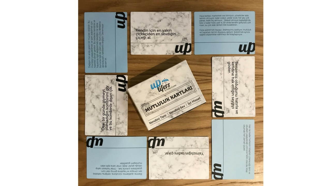 Uplifers olarak “İyi hisset, iyi yaşa” sloganıyla çıktığımız bu yolda şimdi de Uplifers Mutluluk Kartları ile karşınızdayız! Uplifers Mutluluk Kartları, mutlu olma yolunda attığınız her adımda, kendinizi daha iyi anlamanızı sağlayacak soru ve önerilerden oluşuyor.