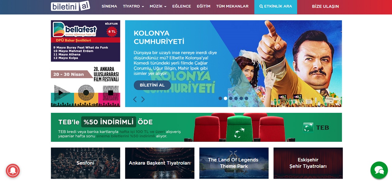 Etkinliklerin keyfini çıkaracağınız bir hafta sonu planı yaptınız yapmasına, peki biletinizi aldınız mı? Siz ‘alsam mı, almasam mı, ne zaman alacağım, nereden bulacağım’ diye kara kara düşünürken BiletiniAl yardımınıza yetişiyor. Akıllı telefonlar için geliştirdikleri uygulamayla; ister yolda giderken, ister iş yeri molalarınızda ister öğle yemeğinizi yerken kolayca bilet rezervasyonu yaptırabiliyor ya da satın alabiliyorsunuz. Sinema, tiyatro, müzik, eğlence, eğitim ve tüm mekanlar kategorileriyle kültürel ve sanatsal alanda birçok etkinliğin bilet satışlarını tek bir platformdan gerçekleştiren BiletiniAl sayesinde, hafta sonu planlarınızı çok daha kolay bir şekilde hayata geçireceksiniz.