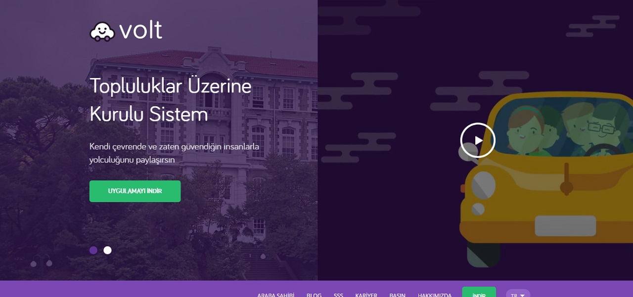 Volt, İstanbul’da aktif olan bir ulaşım uygulaması. İstanbul trafiğindeki 10 arabadan 8’inde sadece sürücü olduğunu ve bu bağlamda trafikteki boş koltukları doldurmayı hedefleyen bu uygulama, bir yandan trafiğin ve fazla araç kullanımının önüne geçmeyi bir yandan da ulaşmak istediğiniz yere en kolay ve rahat şekilde ulaşabilmenizi hedefliyor. Aynı yöne, aynı saatte giden insanları buluşturan bu uygulama araç sahiplerinin benzin masraflarına ortak bulurken, kullanıcılar aynı zamanda birer yol arkadaşı edinmiş oluyor. Sadece şehir içinde değil, şehir dışında da gitmek istediğiniz yerlere bu uygulamayla ulaşabiliyorsunuz; yani Volt, arkadaşlarınızla ya da tek başınıza şehrin hareketliliğinden uzak bir hafta sonu geçirmek istiyorsanız, kararınızı son dakika verseniz dahi planlarınızı gerçekleştirmenize yardım ediyor. Hafta sonunuzu planlarken sizi yıldıran şey eğer gitmek istediğiniz yere nasıl ulaşacağınızı bilmiyor olmaksa ya da trafikte geçireceğiniz saatlerse Volt sizin için en doğru uygulama!