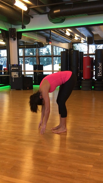 İki ayağınızın arasında yaklaşık bir ayak genişliği kadar mesafe bırakın. Dik bir duruşa gelin ve önce çenenizi göğsünüze ve göğsünüzü karnınıza doğru düşürerek yavaşça yere doğru bükülün. Harekete başlarken nefes verin. Başınızı aşağı doğru sarkıttığınızda karnınızı içeri çekin. Bacaklarınızın arkasında gerilme hissetmeniz normal. Dilerseniz hafifçe dizleri bükebilirsiniz. Dizleri bükmek arka bacak kaslarını rahatlatacaktır.