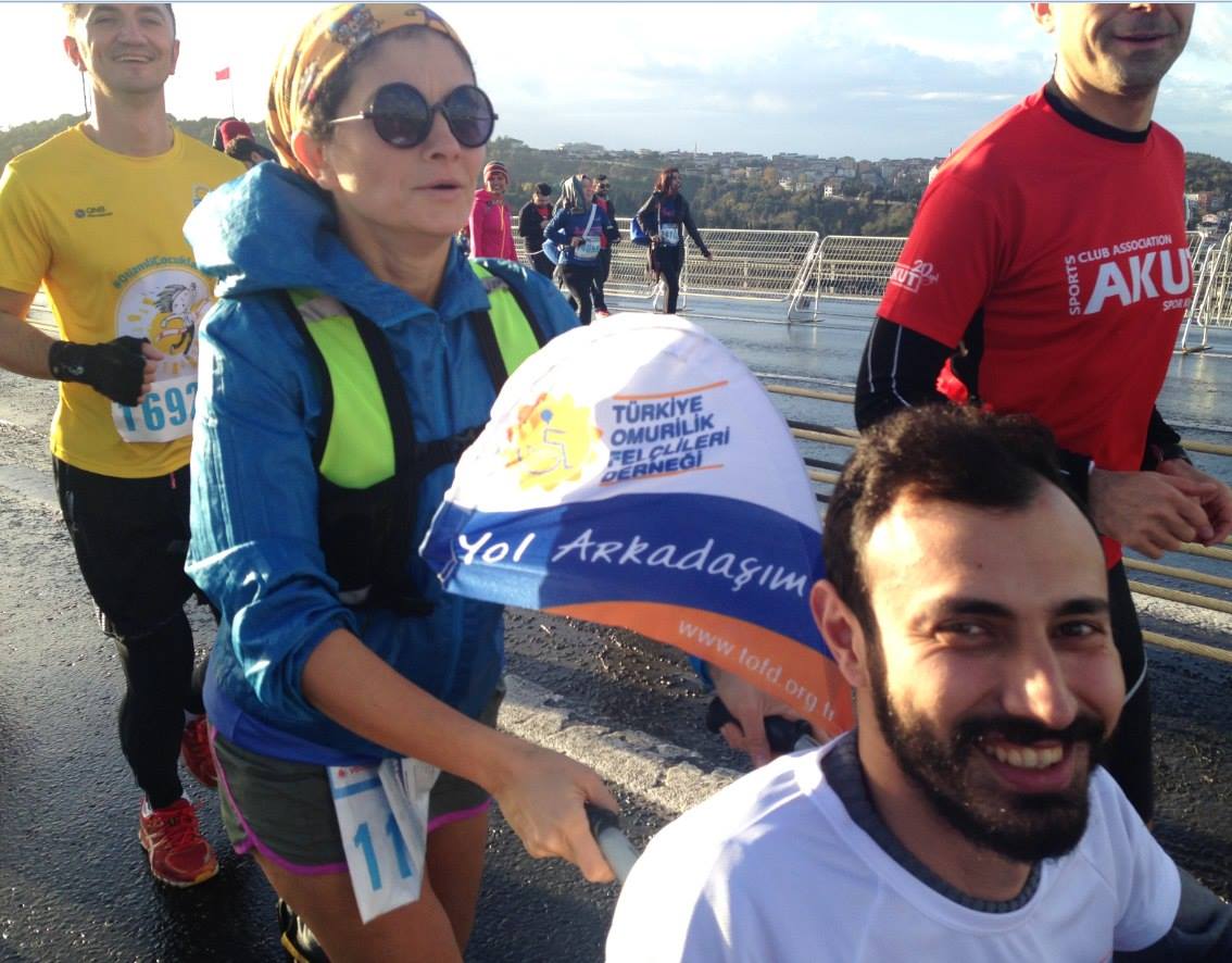Önceki yıllarda olduğu gibi bu yıl da TOFD’deki arkadaşlarımızı tekerlekli sandalyeleri ile birlikte koşturduk. TOFD’nin sloganı ‘Yol Arkadaşım Olur musun?’ Bizler öyle güzel yol arkadaşları oluyoruz ki birbirimize. Mesela ben ALİKEV için bağış toplayıp, kaynak yaratmaya çalışırken, yine aynı sandalyeyi iten ekip arkadaşlarımdan biri Tohum Otizm, diğeri de AKUT için bağış topluyordu. Diğer sandalyelerde de başka başka sivil toplum kuruluşlarından arkadaşlarımız vardı. Sorarım size daha anlamlı bir yoldaşlık olabilir mi?