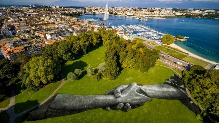 Kutuplaşmakta olan bir dünyada, sembolik olarak dünyanın en büyük insan zincirini yaratmayı seçen sanatçı, Duvarların Ötesinde (Beyond Walls) projesiyle bizi yardımseverliğe ve birlikte yaşamaya davet ediyor. Birliği, karşılıklı yardımlaşmayı ve duvarların ötesindeki ortak çabayı simgelemek amacıyla, şehirden şehre kayan ve iç içe geçen, tokalaşmış elleri çimenlerin üzerine çiziyor.