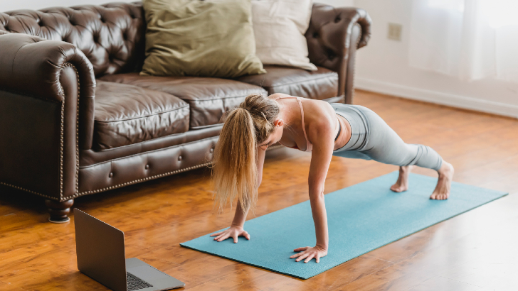 - Kollarınız omuzlarınızın altında ve avuç içleriniz yerde olacak şekilde plank pozisyonu alın.