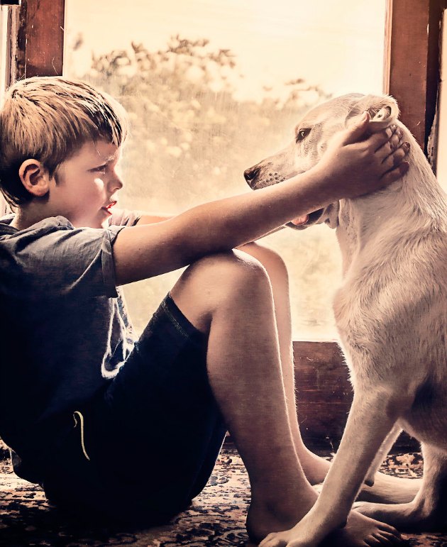 Köpekle dostluk yaşayan çocuğun harika fotoğrafları