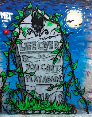 Bu yıl , 15 yıllık hayatımda ilk defa street art yaptım. Streetart yaparken son çalışmalarımda “ölüm” temasını işledim. Çok sıkıntılı bir dönem geçirdim. Sonra kendi kendime dedim ki nedir bu kadar bizi üzen şeyleri dert etmemiz, hayatı sürekli devam edecekmiş gibi yaşamamız, sürekli planlar yapmamız ve dertlerimize boğulmamız. Hatta size belki komik gelecek ama ölüm bize bu kadar yakınken bir insanın 6 ay sonraki tatili için uçak bileti alması bile beni “ölüm” temasını çalışmaya itti diyebilirim.