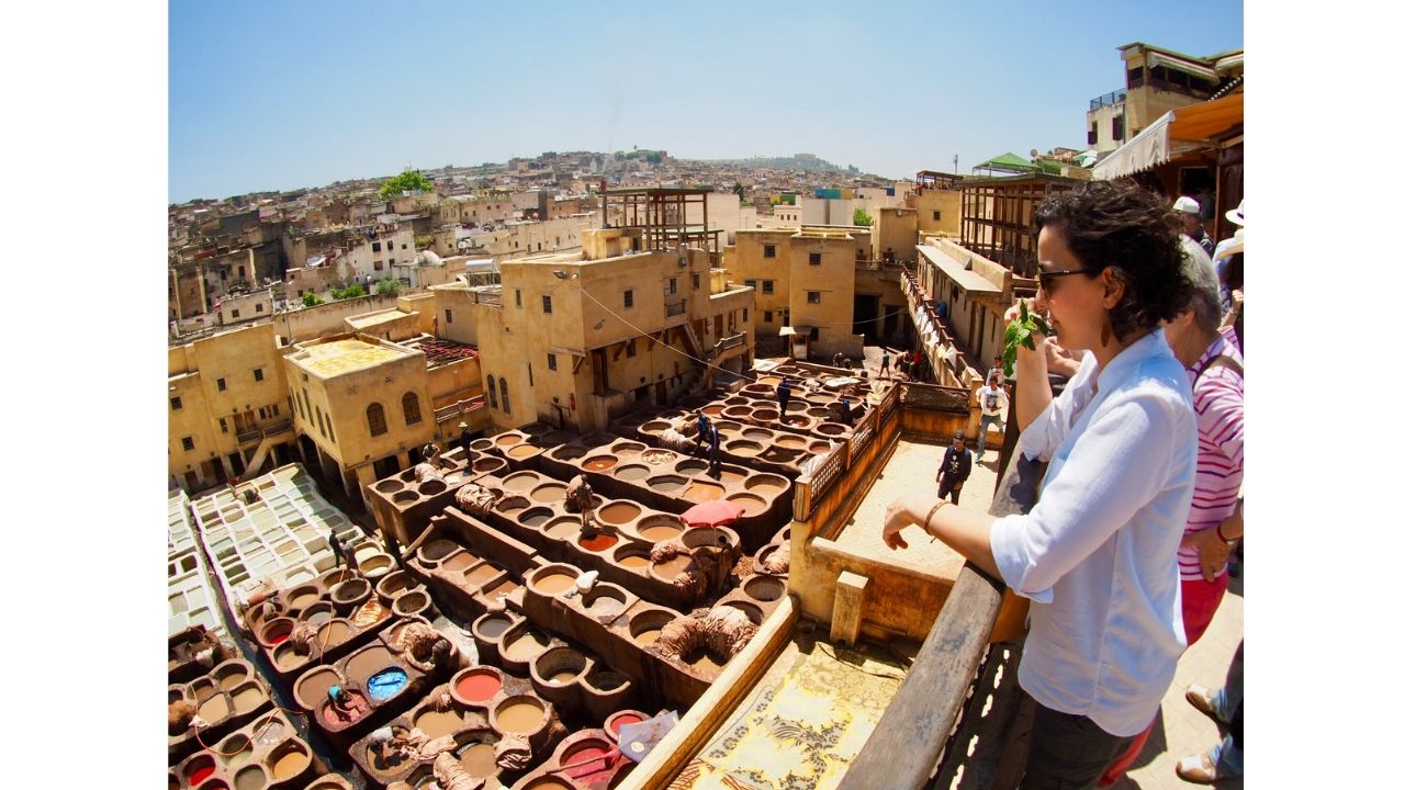 Fez’de soukları gezdikten sonra en önemli kısma yani 1000 yıllık tabakhaneleri görmeye gidiyorum. Medinanın içinde yürüme mesafesindeki tarihi tabakhane, kurulduğu günden bugüne aynı yöntemlerle deri işlemeye devam ediyor. Fas’ın daracık sokaklarındaki dükkanlardan taşan rengarenk deri ürünlerin başlangıç noktası işte tam da burası. Kapıda elime bir nane demeti tutuşturulup yukarı kata yönlendiriliyorum. Nane sayesinde ortamın ağır kokusundan kurtulup hayretler içinde tabakhaneyi izliyorum. Ortamı tüm ayrıntıları ile görmek isterseniz Instagram hesabımdaki IGTV videoma göz atabilirsiniz. (@letsboho)