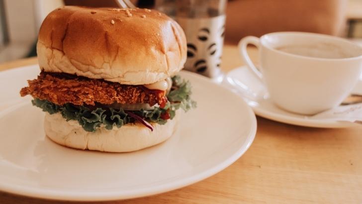 - Domates ve marulla renklendirdiğiniz hamburger ekmeklerinin arasına tofu köfteyi ekleyin.