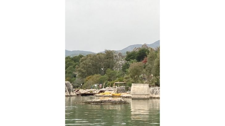 Biraz soluklandıktan sonra devam ediyoruz yürümeye. Üstüne bastığımızda hareket eden ve dengemizi bozan taşları arkamızdan gelenler basmasın diye kenara çekerek, rotanın taşların üst üste koyulmasıyla işaretlenmiş kısımlarına birer taş da biz ekleyerek Boğazcık’a kadar yürüyoruz. Bugünlük bu kadar. Boğazcık’ı yürümüyoruz. Çünkü hem araç yolu, hem de aşırı rüzgarlı oluyormuş. Burada bizi bekleyen servise biniyor ve Kekova Camping’e doğru yol alıyoruz. Varmadan önce bir market önünde mola veriyoruz, istediğimiz bir şey varsa almak için. Çok değil, beş dakikalık bir mola bu. Yani biz öyle sanıyoruz. Ama marketin hemen önündeki karadut ağacı her şeyi değiştiriyor. Ağacın önünde toplanıyor, karadut yemekten bir türlü markete giremiyoruz. Yürüyüşün bundan sonrası, her gördüğümüz ağaç önünde durup, karadut ve muşmula yiyerek geçiyor.