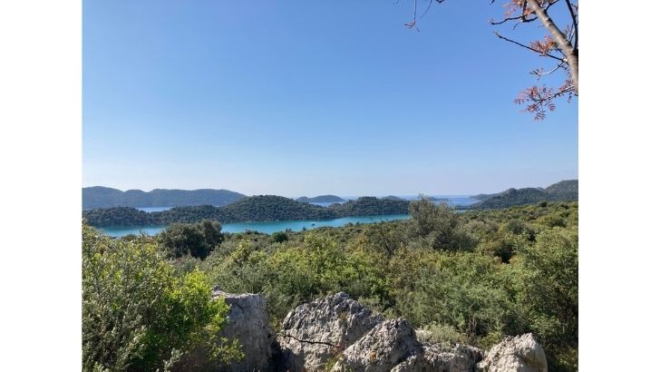 Artık çok daha güzel bir yoldayız. Patika daraldı. Dikenli çalılar arasında, sağımızda deniz, solumuzda dağ manzarası ile devam ediyoruz yürümeye. Bazen kayalıklardan aşağıya inerek, bazen yukarıya çıkarak. Grup liderimiz şu açıklamayı yapıyor yolun belli bir noktasına geldiğimizde: