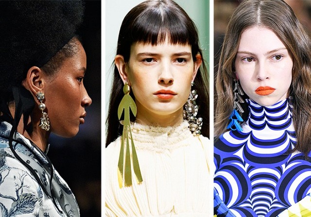 Londra Moda Haftası’nda sunulan neredeyse tüm kombinlerin tamamlayıcı aksesuarları küpeler. Podyumda yürüyen modellerde kimi zaman çift, çoğu zaman da tek olarak kullanılan küpeler büyük ve statement tasarımları ile dikkat çekiyor. Statement küpeler, genellikle gece kıyafetleri ile ya da boynu açık bırakan üstlerle kullanılıyor olsa da 2017 ilkbahar – yaz sezonu trendleri ile bu parçaları her an karşımıza çıkabilir.