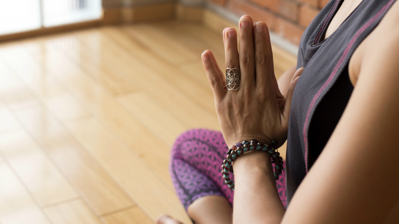 Videoda görüldüğü gibi, nefes alıp vermeye devam ederken, sol el ayası bedene dönük olacak şekilde sağ el sol elin üzerine getirilir, sol başparmağı sağ başparmak ve sağ işaret parmağı arasına getirilir; sol serçe parmağı, sağ serçe parmağı ve sağ yüzük parmağı arasına getirilir ve kalbimizin üzerine konur, gözler kapalı en az 4 nefes alıp verilir. Eller aynı pozisyonda olacak şekilde başımızın üzerine de koyabiliriz, gözler kapalı en az 4 nefes alıp verilir.