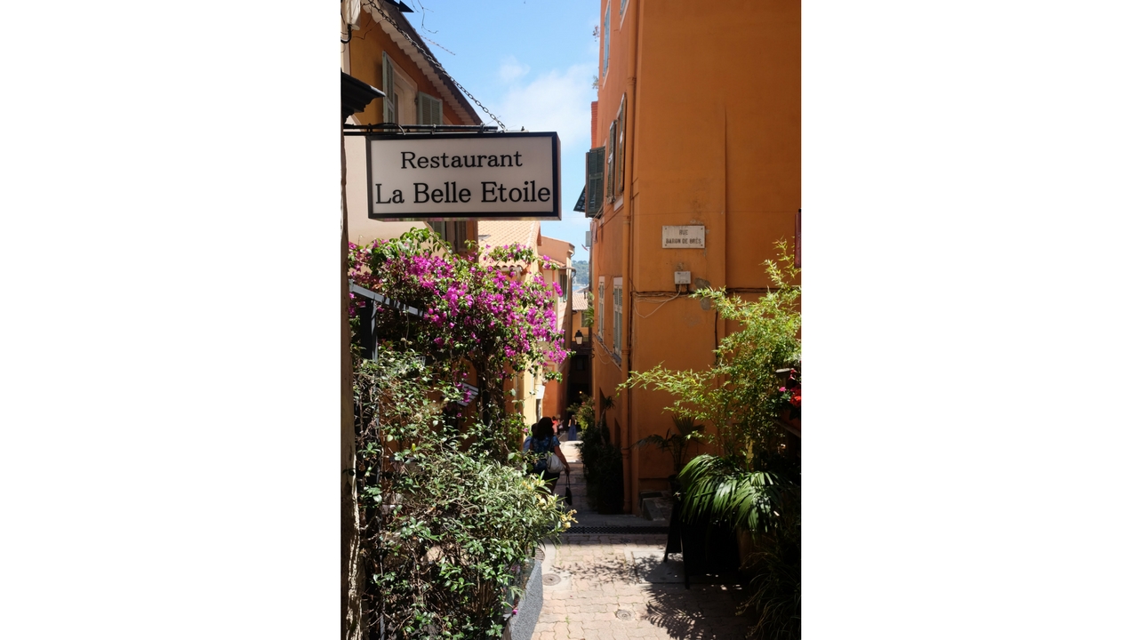 Buraya kadar gelmişken, sıradan, turist tuzağı yerlerde yemek yemeyin. Birazcık yokuş tırmanmayı göze alın ve kendinizi La Belle Etoile’e atın. Tabelasını görmeniz biraz zor olabilir, Cote D’Azur’un sembolü eflatun renkli begonviller tabelasını güzelce saklıyor. Daracık bir sokakta, dışarıya atılmış birkaç masada, fine dining konseptinde muhteşem yemekler sunuyorlar (İçerisi oldukça geniş ama yazın içerde oturmak anlamsız.)