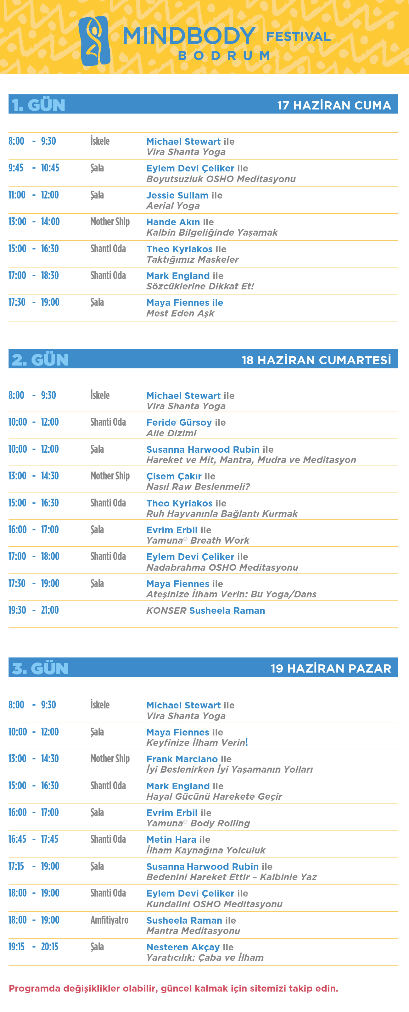 Daha sağlıklı ve mutlu bir yaşam için, yolculuğunuza ışık olabilecek, ilham verecek hikayeler, aktiviteler, görsel sanatlar, tadımlar ve Susheela Raman konseriyle MindBody Festival Bodrum, sizleri 17-18-19 Haziran tarihleri arasında Xuma Yalıkavak’a bekliyor.