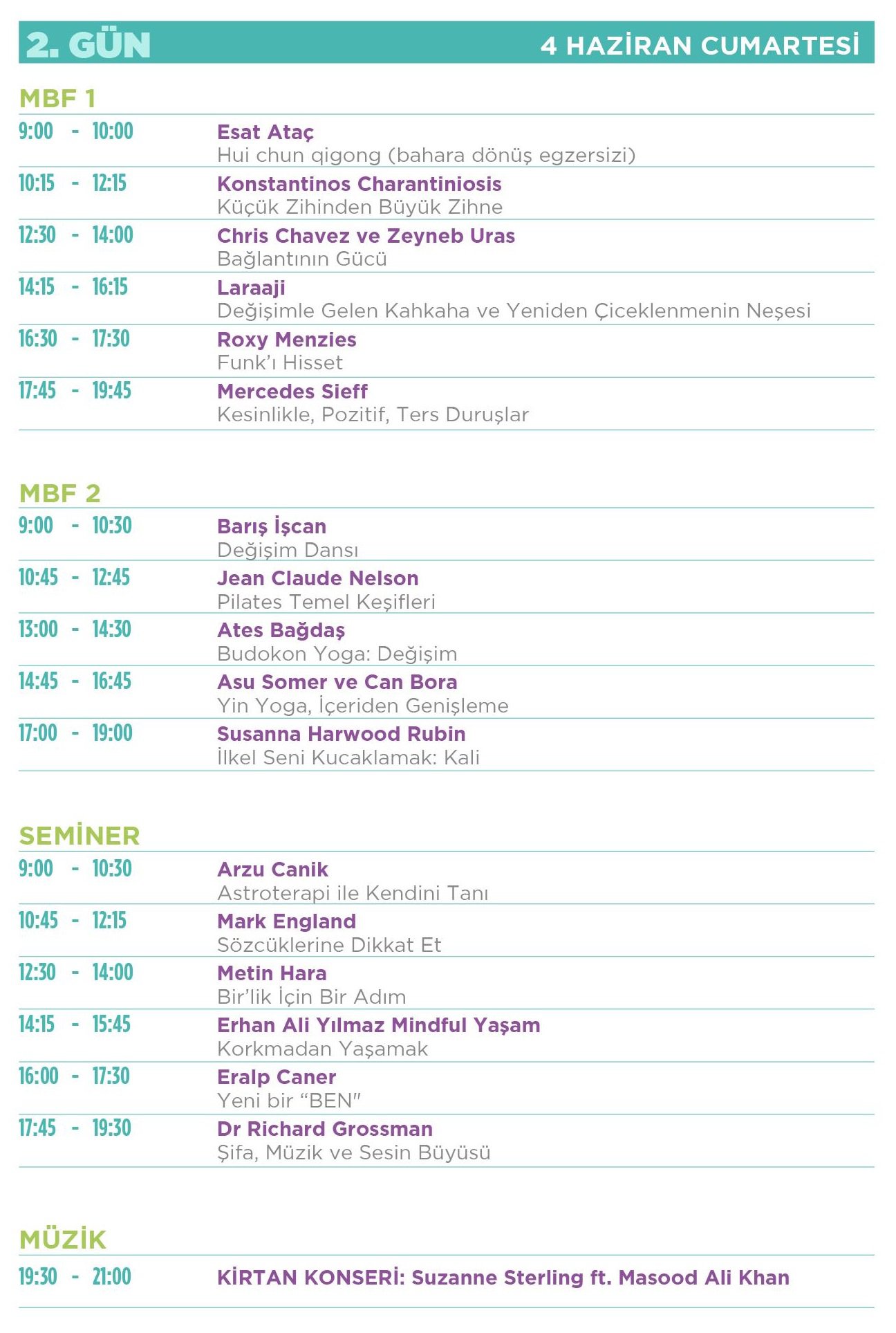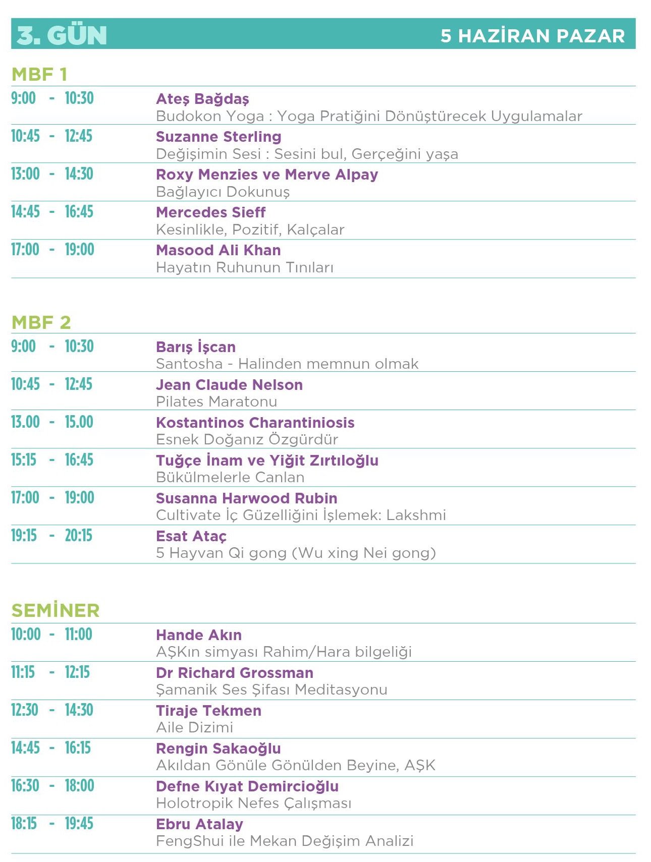 Birbirinden değerli konukların yer alacağı Mindbody Festival’in programına ve ücret tarifesine aşağıda ulaşabilirsiniz: