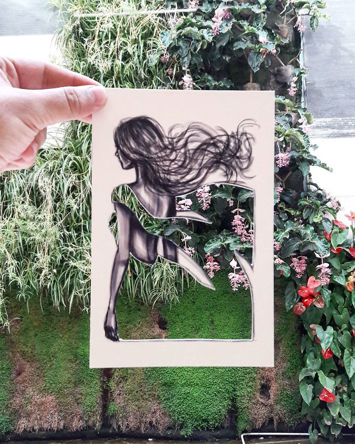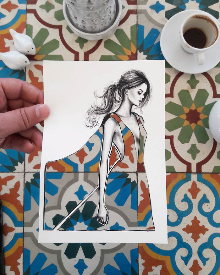 Bu fikrin aklına ilk kez Dubai’ye gerçekleştirdiği bir gezi sırasında geldiğini dile getiren tasarımcı, moda illüstrasyonlarıyla gezi deneyimini birleştirmek için yola çıkıyor ve şehirlerin fotoğraflarını çekmeye başlıyor. Binadan kapı aralığına, su birikintisinden gökyüzüne sayısız tema kullanıyor ve her seferinde tek bir modelde bunlara hayat veriyor. Tasarımlar basit olmasına karşın oldukça başarılı ve fantastik denecek kadar yaratıcı. Dilerseniz Shamekh Bluwi’nin tasarımlarına siz de bir göz atın: