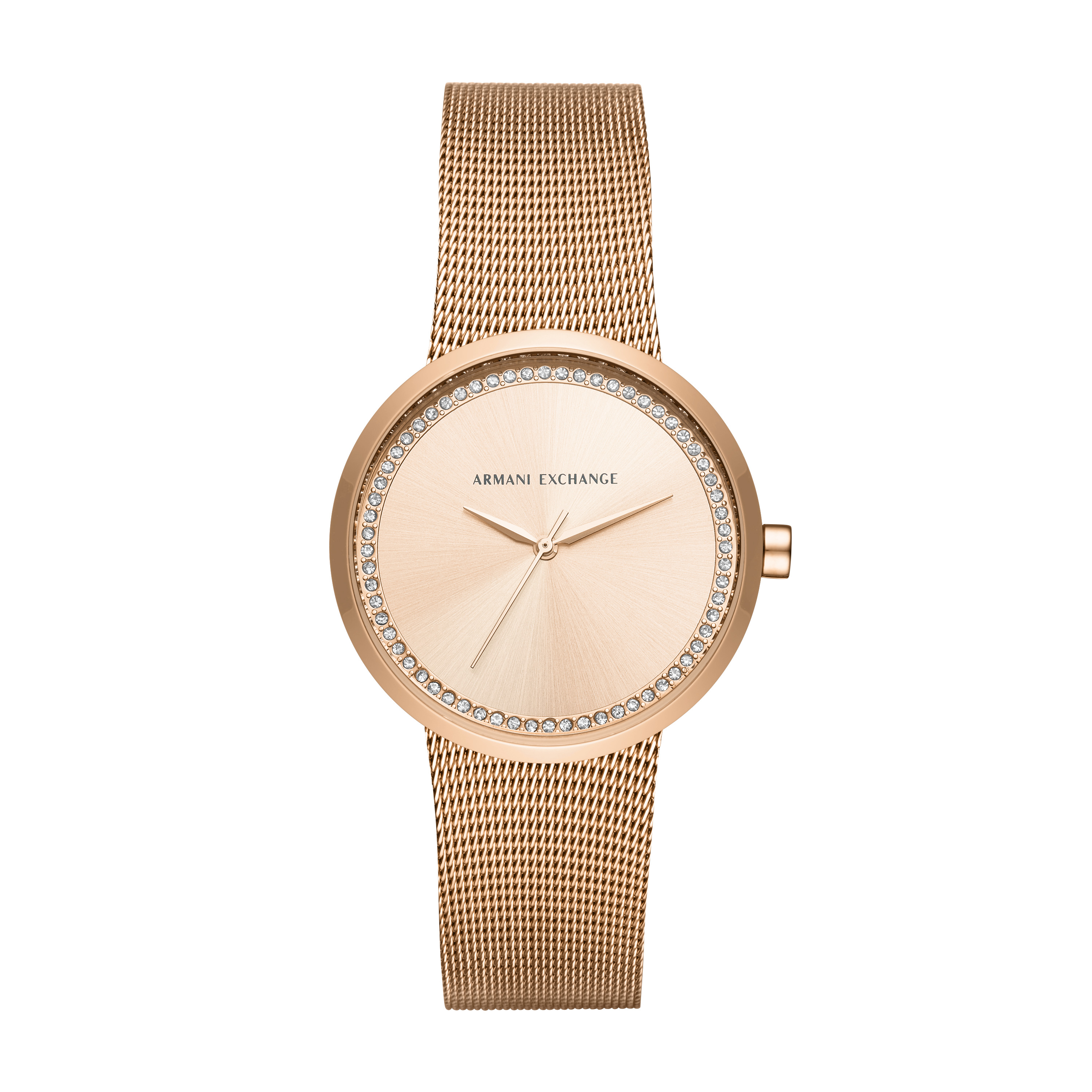 Armani Exchange Kış 2017 sezonunda bireysel stili modern saat tasarımlarıyla harmanlayarak sadeliği ve şıklığı ön plana çıkardığı modelleriyle dikkat çekiyor. Minimalist çizgiye ve çağdaş bir tasarıma sahip hasır kayışların kristallerle çevreli bezelle bir araya geldiği şık saatler, bu sezonun olmazsa olmaz aksesuarları arasında yerini alıyor. Her tasarım özenle hazırlanırken metal etkisi modellerin tamamına hakim oluyor. Altın, paslanmaz parlak çelik, pembe altın yada okyanus mavisi…