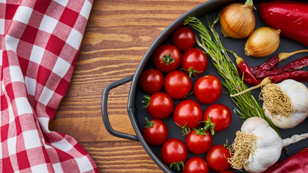 - Soğan, domates ve taze kişniş ile ev yapımı salça yapın.
