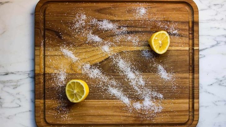 Ne kadar temizlerseniz temizleyin kesme tahtanızdan kokuların gitmediğini mi düşünüyorsunuz? Öyleyse bu hileyi mutlaka denemelisiniz. Kokuları ve lekeleri yok etmek için kesme tahtanızın üzerine her yere gelecek şekilde tuz serpiştirin ve ikiye kestiğiniz limon ile hafif hafif bastırarak tuzla birlikte kesme tahtanızın her yerini ovalayın. Her yeri tuz ve limon ile iyice çitiledikten sonra su ile durulayın. Ahşabın gözenekli yapısı nedeniyle içine hapsolan farklı kokuların bu sayede derinlemesine temizlendiğini göreceksiniz.