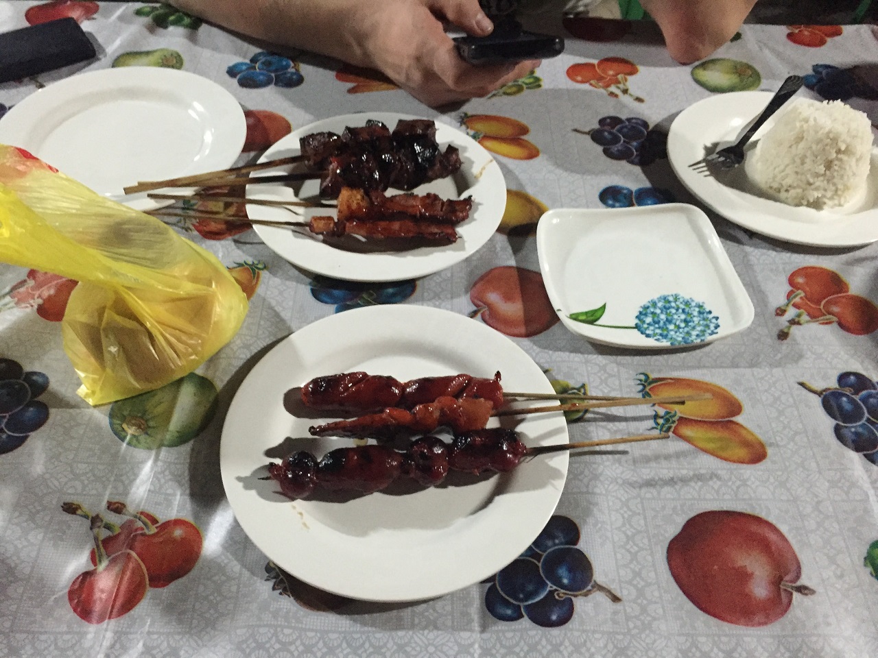 Doğa yürüyüşü, şelalenin sularıyla savaş derken nasıl da acıkmış olduğunu fark etmiyorsun ama koşturmaca bitince açlık bir anda bastırıyor. Yemek için Oslob’un minik merkezinde birkaç seçenek bulabilirsin. Güneş batmaya başlayıp hava kararırken yolun her iki yanına barbeküler kurulmaya başlıyor. Kesinlikle denemeni önereceğim bu salaş barbekücülerin masaları dolup dolup taşıyor. Önceden hazırlanmış şişte tavuklar, soslu domuzlar, sosisler gibi çeşitli etler arasından istediğini seçip orada pişmesini izliyorsun. Barbekülerin yanında dilersen pilav ve de kesinlikle ice tea sipariş ediliyor. Çünkü Filipinliler’in ice tea aşkı bambaşka, hangi restorana gitsen tüm masalarda en az dev bir şişe ya da bir sürahi ice tea bulunduğunu göreceksin. Tadına bakmalısın, çünkü alıştığımızdan çok daha farklı bir lezzeti var. Eğer daha farklı bir şeyler denemek istiyorsan “pembiş yumurtalara” bir göz atmalısın. Kırmızı bir sosa bulanıp önceden pişirilmiş soluk pembe renkli yumurtalar tarif bile edemeyeceğim farklılıkta bir tat sunuyorlar. Güzel yemek sonrasında Oslob’da yaşayanların en büyük eğlencesi merkezdeki minicik barlarda buluşup karaoke yapmak. Bu eğlenceye ortak olarak günü keyifle tamamlayabilirsin.