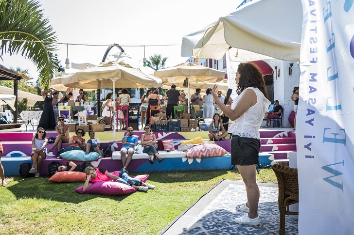 Body sahnesinde sabah meditasyonu ile WellFest Bodrum’un açılışını yapan Seza Aslanbaş sonrasında Mind sahnesindeki yerini alarak katılımcılarla bir araya geldi. Sahneden inerek konukların yanında yer alan Aslanbaş, farkındalık çalışmalarını katılımcılarla birlikte hayat geçirdi. “Tekrarlayan Yaşam Döngüleri Atölyesi” ile hem bedensel hem de zihinsel farkındalığını geliştirmek isteyen herkese dokunan Aslanbaş, kişisel yaşam tecrübelerini paylaşmayı da ihmal etmedi. En yeni Bodrumlulardan biri olan Seza Aslanbaş metropol hayatından Bodrum’a geçişini de farkındalıkla birlikte açıklayarak deneyimlerini aktardı.