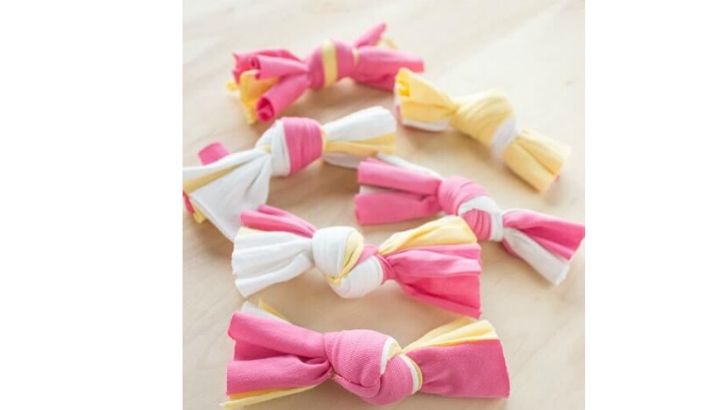 Kediler ufacık bir şeyi patileriyle ittirerek oynamaya bayılır. Eski bir tişörtünüzü atmayın. Tişörtünüzden yaklaşık 10 cm genişliğinde ufak parçalar kesin. Bu parçaların her birini ortasından sıkıca düğümleyin. Böylelikle kedinizin peşinden hiç sıkılmadan koşturacağı, atlayıp zıplayacağı oyuncaklar elde edebilirsiniz.