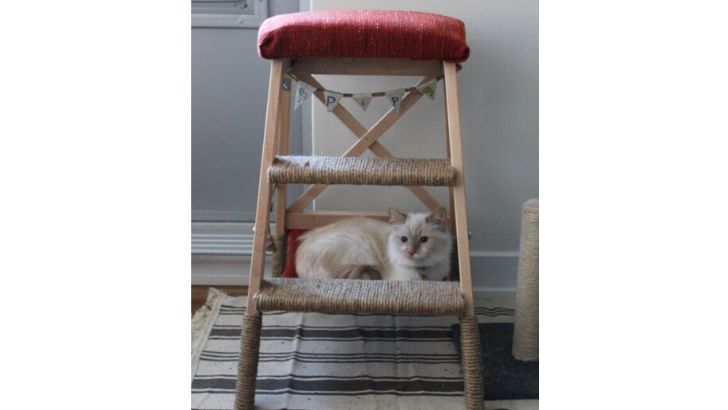 Kullanmadığınız bir tabure varsa işiniz çok kolay. Taburenin ayaklarını kalın bir kral iple sararak kedinizi tırnaklarıyla oynamaktan keyif alacağı bir şeye dönüştürebilirsiniz. Taburenin oturma kısmına ince bir sünger ve üzerine kalın bir kumaş kaplayarak da kedinizin üzerine çıkıp oturabileceği bir alan yaratabilirsiniz.