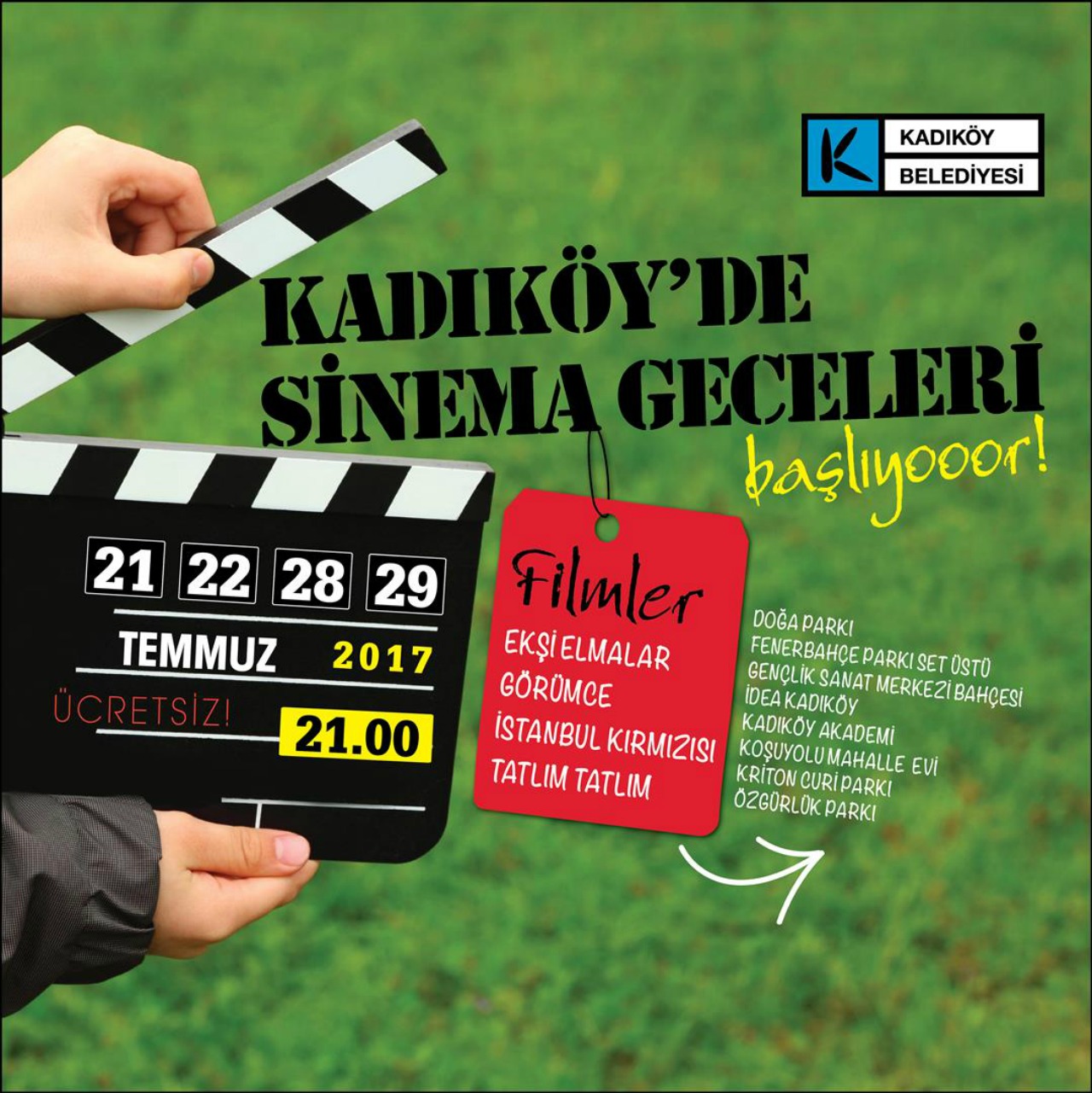 Kadıköy Belediyesi tarafından düzenlenen Yazlık Sinema etkinliğinde geçtiğimiz yıl vizyona giren ve beğenilen dört film, Ekşi Elmalar, Görümce, İstanbul Kırmızısı, Tatlım Tatlım sekiz ayrı parkta izleyici ile buluşacak.