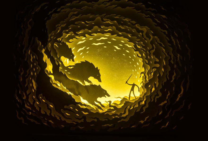 Kağıtları keserek ve şekiller vererek antik zamanlardaki masalları farklı bir teknikle canlandırmaya çalışan sanatçıların izledikleri yöntem, herkesin yapabileceği kağıt kesme tekniklerinden ibaret. Yaptıkları işi farklı kılan şeyse kestikleri kağıtları sahneleri canlandıracak şekilde yerleştirebilmeleri, yani hayal gücü.