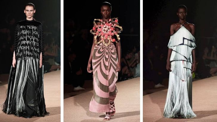 Tasarımcılar çok farklı disiplinlerden, çok farklı konularda ilham alabiliyor: Doğa, güzellik, siyaset, göç, hatta bazen susuzluk, açlık… Mary Katrantzou ise bu defilede kuraklığı ele alıyor.