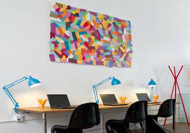 Mutfağınızda kahvaltı masalarınızı renklendirecek bir görüntü için renkli kağıt rozetlerden duvarınıza dev bir tablo hazırlayabilirsiniz. Farklı renklerdeki kağıt rozetlerini birleştirerek eviniz ya da ofisinizin duvarı için sihirli bir görüntü elde edebilirsiniz.