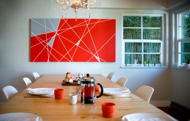 Mağazalarda modern tablolar aramak yerine, eviniz için kendi modern sanat eserinizi yaratabilirsiniz. Mutfağınızı ya da yemek odanıza uygun renklerde boyalarla, modern çizgilere sahip tablonuzu hazırlayabilirsiniz.