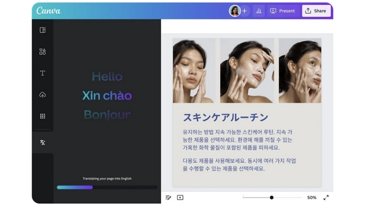 Bu süreçte, resimden çeviri yapmada kullanılabilecek birçok araç ve teknik vardır ancak asıl OCR teknolojisinden bahsetmeye devam edeceğiz. Bu teknoloji sayesinde görsellerdeki metinler tanımlanarak metin formatına dönüştürülür ve ardından dil çevirisi yapılabilir şeklinde bahsetmiştik. Bu işlemin ardından metin, uygun bir yazı tipi ve düzenle görsele yeniden entegre edilir. Öne çıkan resimden çeviri araçlarından biri olan Canva, farklı dil seçenekleri sunarak bu süreçte oldukça işlevsel bir rol oynar. Canva’nın resimden çeviri yapma aracını kullanarak 130’dan fazla dilde aynı gönderiyi aynı formatta hızlıca oluşturmak mümkün.