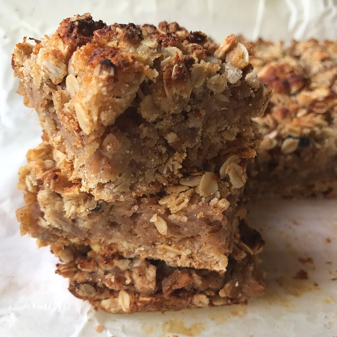 Elmalarla tarçını tavada yaklaşık 5 dk çeviriyoruz. Yulaflı karışımın 2/3’ünden biraz fazlasını yağlı kağıt serili kare bir borcama döküp bastırıyoruz. Önceden ayarladığımız 200 derece fırında 10 dk pişiriyoruz. Fırından çıkarıp, elma-tarçın karışımını üzerine döküyoruz. Kalan yulaflı karışımı da sosun üzerine ilave edip tekrar 15 dakika fırınlıyoruz. Soğuduktan sonra dilimleyip afiyetle yiyoruz.