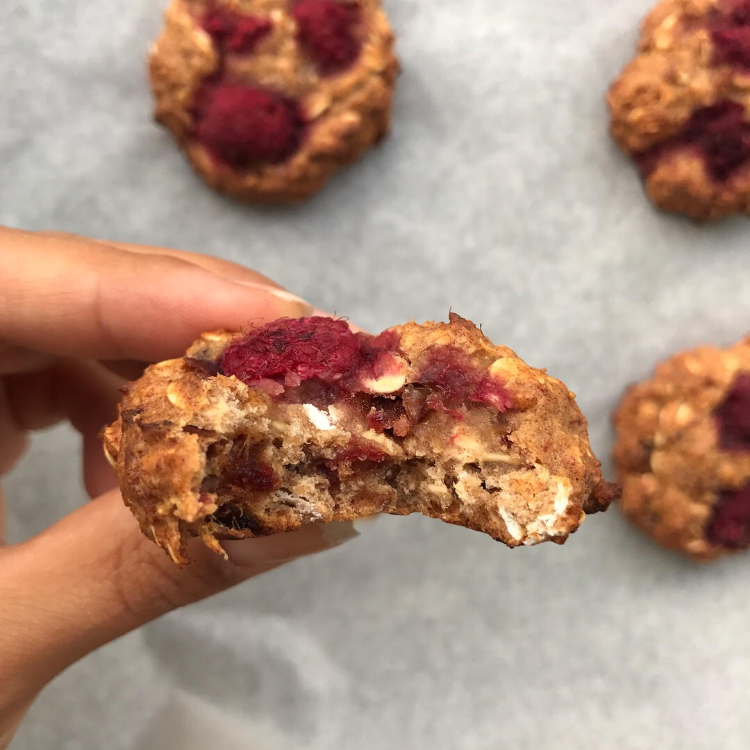 Hurmaları ılık suda bekletip çekirdeklerini çıkarıyoruz, rondoda çekiyoruz. Yumurtaları bir kapta çırpıp tüm malzemeleri ekliyoruz. Elimizde yuvarlak şekil verip yağlı kağıt serili tepsimize diziyoruz. Üzerini frambuazla süslüyoruz (dilediğiniz meyve olur, çeşitlendirmek size kalmış). Önceden ayarladığımız 180 derece fırında 15 dakika pişiriyoruz. Afiyet olsun.