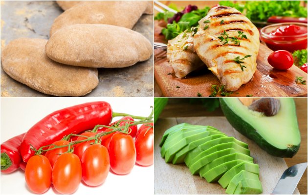 Kepekli pitayı iki eşit parçaya kesin. Arasına 1 yemek kaşığı hazırladığınız domatesli karışımdan sürün. Daha sonra roka, ızgara tavuk ve avokado dilimlerini ekleyin. Afiyet olsun.