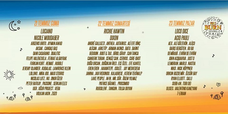 100 farklı DJ ile 3 gece 3 gün sürecek Big Burn Festivali 21 Temmuz Cuma günü Suma Beach’te başlıyor. Loco Dice, Acid Pauli, Richie Hawtin, Luciano, Dixon gibi ünlü isimlerin de sahne alacağı bu festivale nasıl gidilir, neler yapılır, kimler dinlenir?