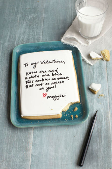 Kurabiye karışımını pakette yazdığı gibi hazırlayıp dikdörtgen şekildeki kek kalıbınızda pişirin. Daha sonra dik bir şekilde tutarak dilerseniz defter çizgileri çizerek üzerine notunuzu ya da mektubunuzu yazın. Kağıda sararak kurdele ile bağlayın.