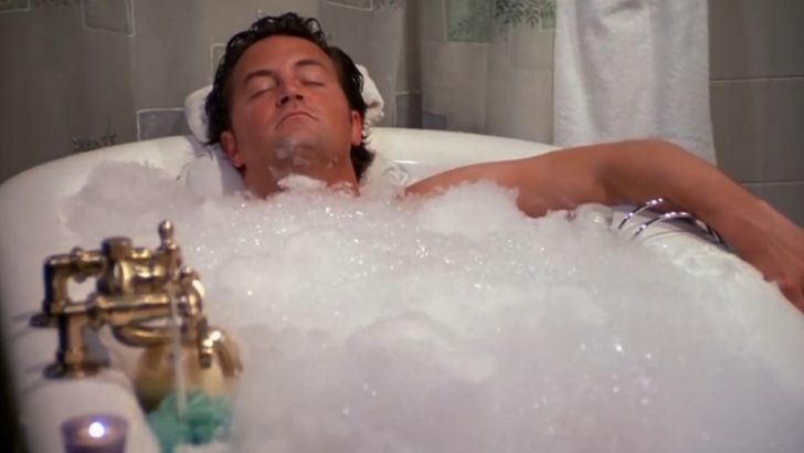 Monica, sıklıkla kendi için hoş bir ortam kurarak köpüklü banyo hazırlar. Chandler ise bunun çok saçma olduğunu, temizlenmek için neden bu kadar zahmete girdiğini anlamadığını söyler. Monica da onun bu düşüncesini değiştirmek için Chandler’a özel sabunlar ve kokular ile bir ortam yaratarak denemesini ister. Sonrasında ise kendisini ne kadar rahatlattığını ve mutlu hissettirdiğini fark ederek köpüklü banyonun hayranı olur.